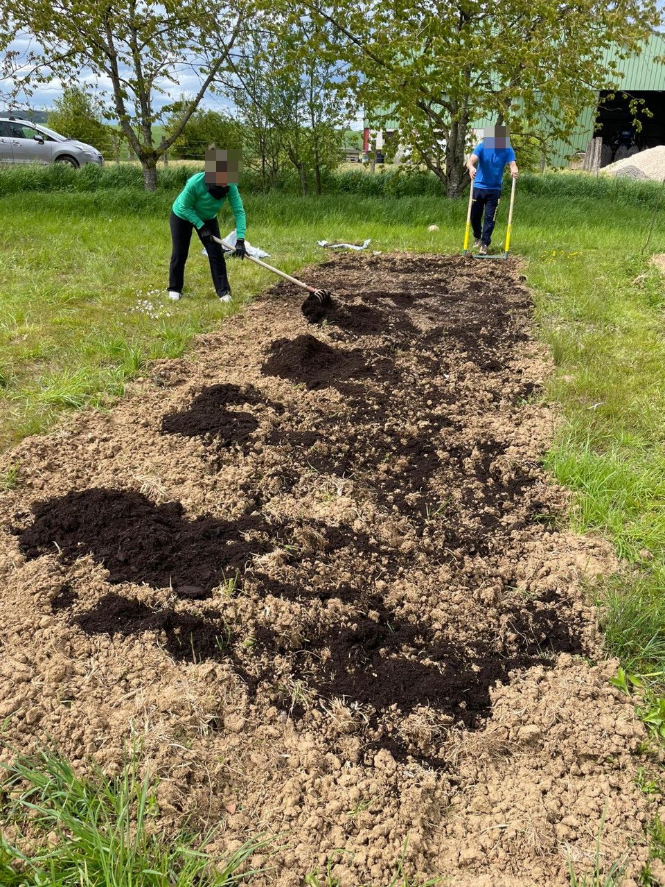 Notre potager partagé, jouxtant notre verger école, s'est bien activé en cette fin avril , malgré une météo défavorable. plusieurs familles mettent à contribution leu savoir et leur énergie pour permettre la mise en place des cultures.
